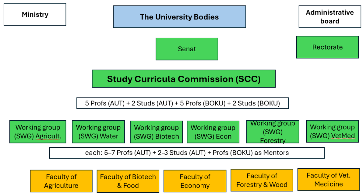 For the revision of the teaching programs the Study Curricula Commission (SCC) was established with Subject Working Groups (SWG) to revise and develop the new Bachelor and Master programs according to the BOKU principles.